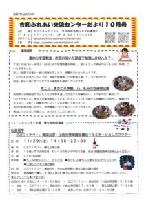 【令和7年10月号】吉和ふれあい交流センターだより 2025 9/26 吉和ふれあい交流センターだより 2025年9月26日 10月号ダウンロード 吉和ふれあい交流センターだより この記事が気に入ったら フォローしてね! Follow Me よかったらシェアしてね! URLをコピーしました! URLをコピーしました! 地域住民の方々とカープ観戦に行きました!(主催事業) 【令和7年10月号】コミュニティ通信