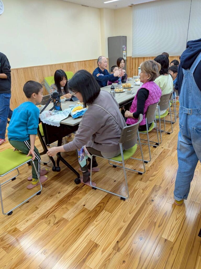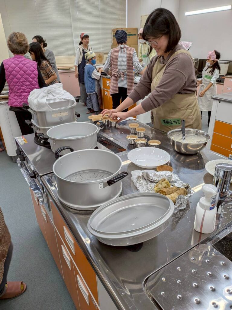 10月26日(土)地元吉和産のさつまいもを使って親子クッキングを開催しました。メニューは、焼き芋マフィン・蒸しパン・芋ようかんの3種類を米粉で作りました。親子で協力して楽しくクッキングができました。とても美味しく出来上がり皆さん喜んでいただき、次回のメニューも考えられていました。最後の少し寒かったですが芋堀体験を行い終了しました。