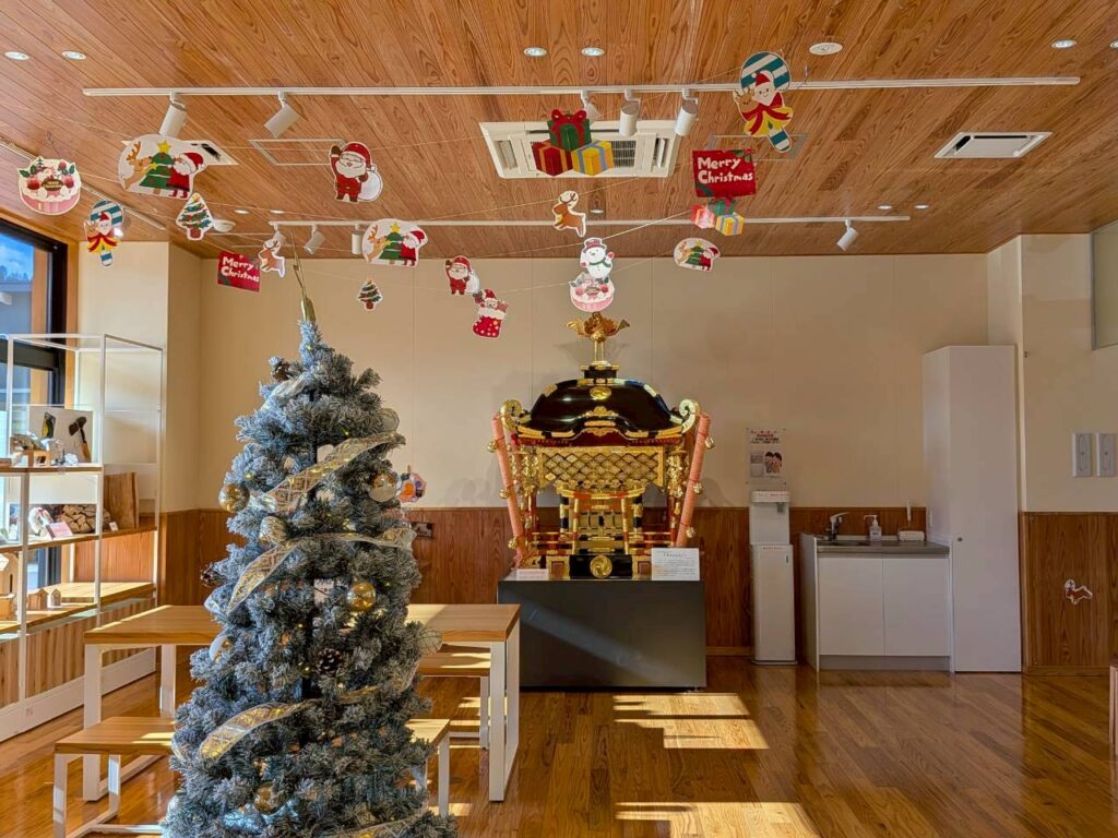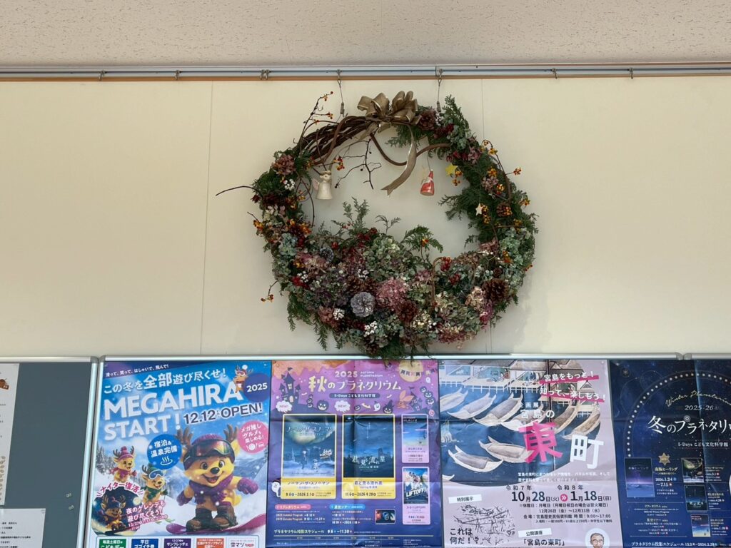 クリスマスシーズンとなりました。クリスマスツリー等で飾りつけをしてみました。なかなか大きいツリーです。一緒に写真を撮られてはいかがでしょうか。また、吉和地域の方からクリスマスリースのプレゼントをいただきました。是非お越しください。