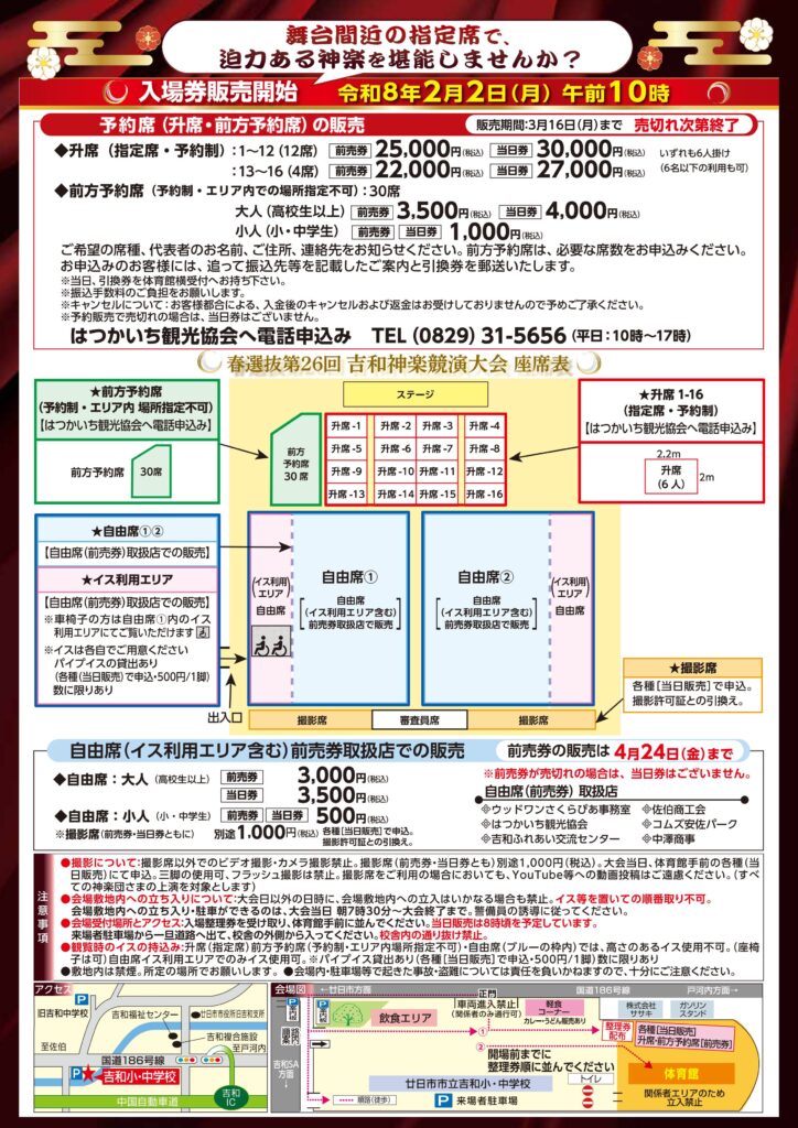 撮影席以外でのビデオ撮影・カメラ撮影禁止。撮影席(前売券・当日券とも)別途1,000円(税込)。